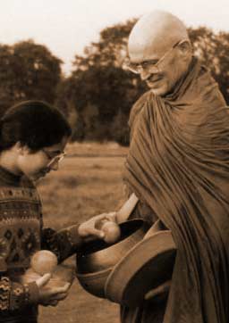 | As I said last night, when you're miserable at least you feel alive. To feel persecuted makes you feel really alive. Hating people makes you feel alive, doesn't it? If you really hate somebody, then you know you're really alive and you feel energised. Some people get very dull when they don't hate people, when they don't have any lust or greed for something, or any ambition to get somewhere. Why do people want to climb Mount Everest, or be the first one to sit the longest in a tub of baked beans? (There is actually someone - it's in the Guiness Book of Records. Imagine the danger of being reborn from that one!) Taking revenge, seeking vengeance, is sometimes what keeps people alive. I've never been in an English pub because all my life in England I've lived as a monk -but in American ones, I remember you'd go and you'd argue. You can get very heated about political things that you really don't care about very much-, it makes you feel alive to win an argument, or to support and defend a particular viewpoint. Now contrast that to what we're doing here where the attention is on such ordinary things. There's nothing much: the passions are let go of - greed, hatred, delusion. You're conscious of breathing now, conscious of feeling - neutral feeling - Conscious of causes. You're bringing into consciousness the way things are. Now one doesn't feel this desire: the desire to go after extremes falls away. Most of us would really not want to argue about political views, or go to pubs, or climb Mount Everest, or sit in a tub of baked beans. So this is where most of our life is: it's the same for everyone really. The extremes are brief moments, but most of our life is like this: it's eating, walking, sitting, lying down, feeling, waiting for the bus, waiting for somebody to telephone, waiting for the bell to ring, waiting for the next event. And all that time we're breathing and there's feeling, and there's consciousness. In the practice of awareness, we're bringing consciousness to the ordinariness because we're not Usually conscious of that: Usually the ignorant person is conscious only in the extreme moments. |
